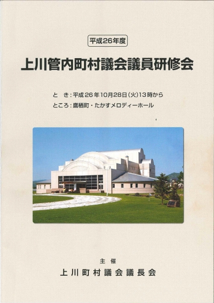 平成26年度 上川管内町村議会議員研修会が10月28日に鷹栖メロディーホールにて約300名の参加により開催されました。