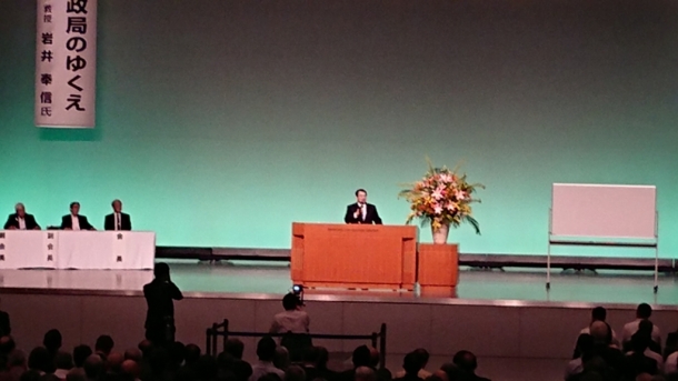 菅原功一前旭川市長による挨拶と祝杯の発声