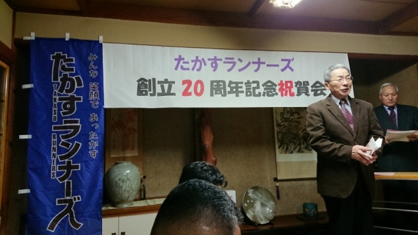 平成10年4月、マラソンランナーの仲間達が「健康づくりと仲間の輪づくり」を目的として初代会長 荒谷 正と10名のランナーにより「たかすランナーズ」が結成され20年を迎えられました。