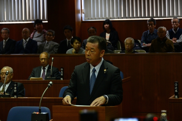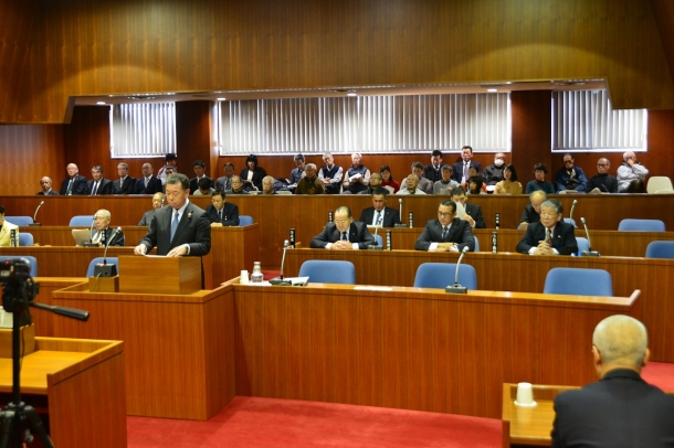 今定例議会では、谷町長2期目(11月5日就任)最初の定例会議会であり、任期中の町政担当に際しての所信表明を行い5項目の基本施策を町民に約束しました。