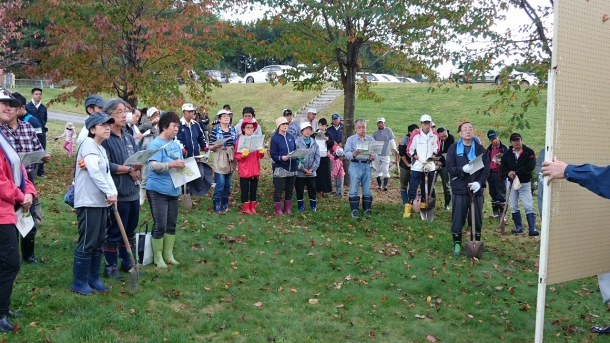 また、今年は植樹祭に先立ち参加者にパレットヒルズの総合開発計画の全体像と今後の整備計画の予定についての説明会が行われた。