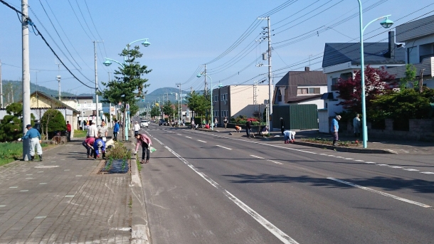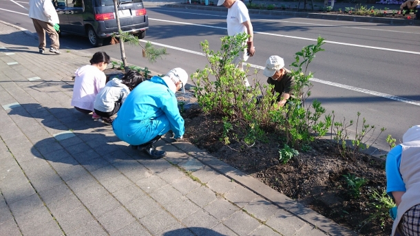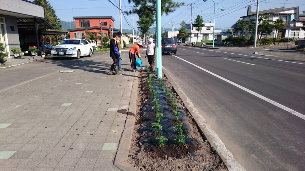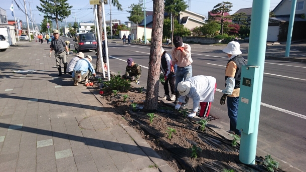 4月25日春のクリーン作戦の時に施肥を行った植樹桝に、町花(マリーゴールド)の苗を早朝より多くの町民がピンクとオレンジ二色を丁寧に定植された。 また、今回も多くの子供たちが大人に混じり手伝いをされている微笑ましい光景が何よりも美しく感じられた。