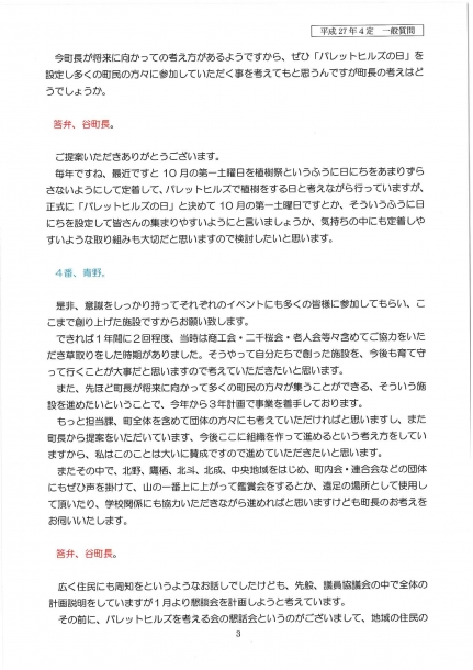 一般質問 (内容) パレットヒルズ構想について (一問一答方式)