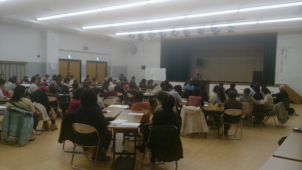 阿部先生が今まで医師として診断・治療した経験にもとづいてポイント的な話があり、会場の参加者もうなずきながら聞き入っていました。